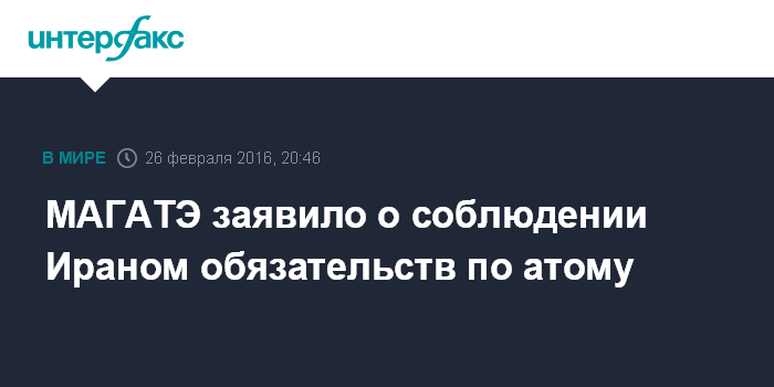 Это первый доклад МАГАТЭ по иранской ядерной программе с момента начала имплементации 16 января 2016 года соглашения, заключенного Тегераном с "шестеркой" международных посредников.