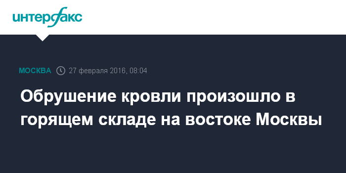 Москва. 27 февраля. INTERFAX.RU - В горящем складе на востоке Москвы обрушилась кровля, сообщили "Интерфаксу" в пресс-службе столичного управления МЧС.