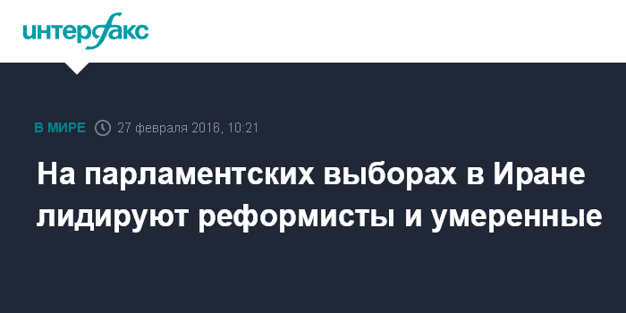 Москва. 27 февраля. INTERFAX.RU - Представители реформистов и умеренных сил лидируют на выборах в меджлис (парламент Ирана), которые в пятницу состоялись в Исламской республике, сообщает в субботу агентство Associated Press.