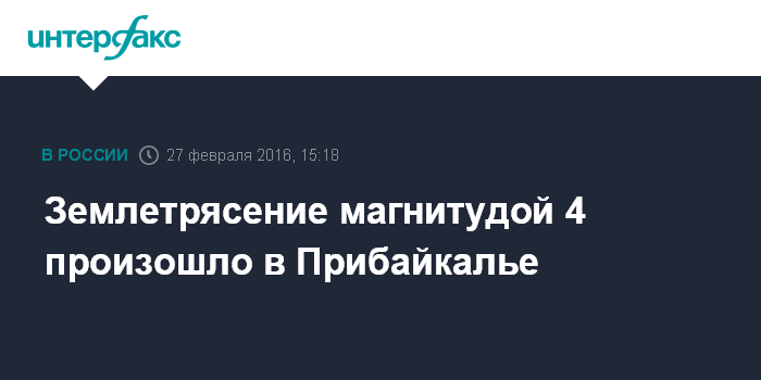 Землетрясение магнитудой 4 произошло в Прибайкалье