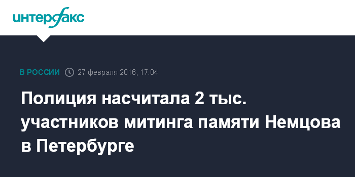 Москва. 27 февраля. INTERFAX.RU - Порядка 2 тыс. человек участвовали в митинге памяти Бориса Немцова на Марсовом поле Петербурга, сообщили "Интерфаксу" в пресс-службе регионального ГУ МВД в субботу.