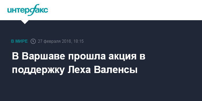 Москва. 27 февраля. INTERFAX.RU - Многотысячная демонстрация и митинг в поддержку бывшего лидера профсоюза "Солидарность" и бывшего президента Польши Леха Валенсы прошла в субботу в Варшаве, сообщает польский телеканал ТВН24.