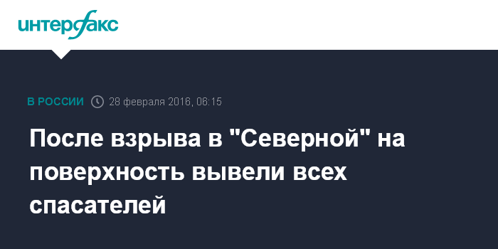 По уточненной информации, в 01:24 мск при проведении поисково-спасательных работ произошел повторный взрыв на шахте "Северная".