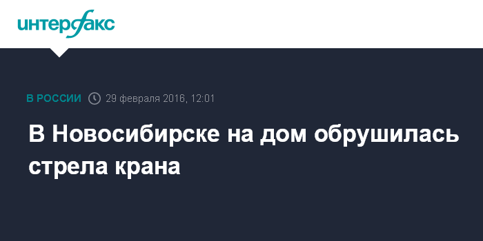 Москва. 29 февраля. INTERFAX.RU - Стрела гусеничного крана обрушилась в понедельник в Центральном районе Новосибирска на жилой дом, сообщили "Интерфаксу" в пресс-службе ГУ МЧС России по региону.