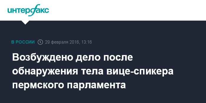 Возбуждено дело после обнаружения тела вице-спикера пермского парламента