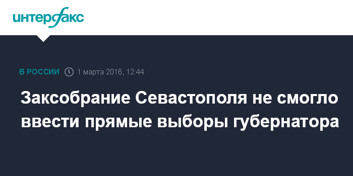 Москва. 1 марта. INTERFAX.RU -- Законодательному собранию Севастополя не хватило голосов для введения прямых выборов губернатора.