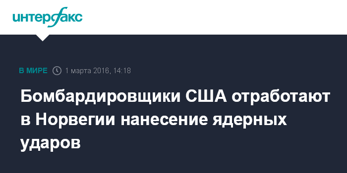 Москва. 1 марта. INTERFAX.RU - В ходе начинающихся в Норвегии крупномасштабных учений НАТО Cold Response ("Холодный ответ") три американских стратегических бомбардировщика В-52, переброшенные в Европу, будут отрабатывать нанесение ядерных ударов по наземным целям, сообщила во вторник служба общественных связей авиабазы "Барксдейл" (штат Луизиана).