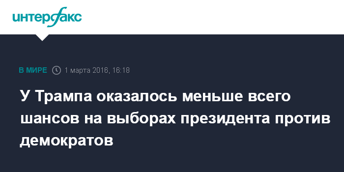 Москва. 1 марта. INTERFAX.RU - Оба фаворита предвыборной гонки от партии демократов с легкостью одержали бы победу над лидером праймериз республиканцев Дональдом Трампом, свидетельствуют данные последнего опроса, проведенного при участии телеканала CNN.