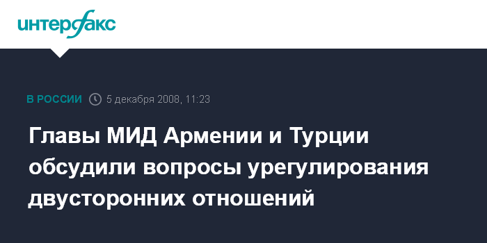 "В Хельсинки 4 декабря состоялась встреча глав МИД Армении и Турции. На встрече стороны продолжили переговоры, направленные на урегулирование армяно-турецких отношений", - сообщили в пресс-службе МИД. Главы МИД двух стран договорились продолжить встречи.