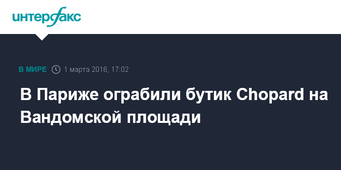 Москва. 1 марта. INTERFAX.RU - Ювелирный магазин Chopard на Вандомской площади в Париже во вторник подвергся налету вооруженных грабителей, сообщает агентство EFE.