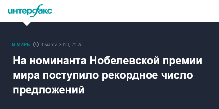 На номинанта Нобелевской премии мира поступило рекордное число предложений