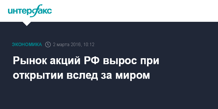 Рынок акций РФ вырос при открытии вслед за миром