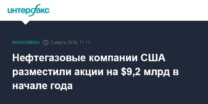 Согласно данным агентства Bloomberg, с начала текущего года нефтегазовые компании США объявили о размещениях акций на общую сумму порядка $9,2 млрд, что является самым высоким показателем для этого периода года с 1999 года.