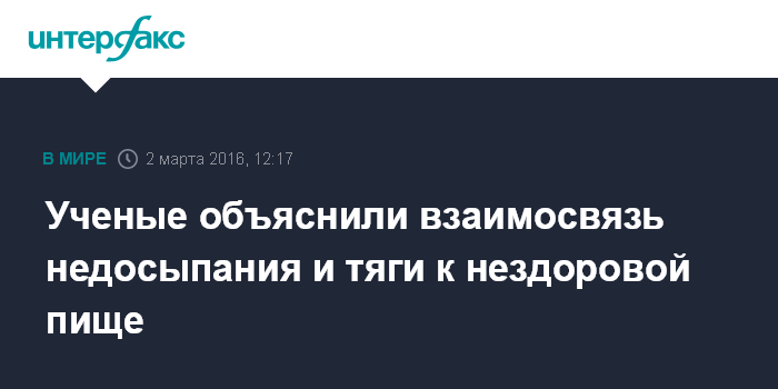 Ученые объяснили взаимосвязь недосыпания и тяги к нездоровой пище