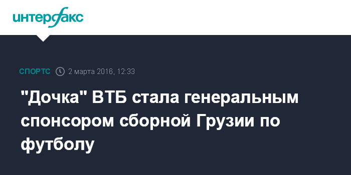 Официальным генеральным спонсором национальной сборной Грузии по футболу в ближайшие два года будет АО "Банк ВТБ (Грузия)", являющийся дочерней структурой российского ВТБ банка.