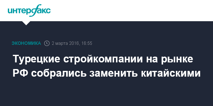 "Вопрос совместной работы в сфере строительства, в частности жилья, прорабатывается с китайской стороной. Это интересно, в частности посмотреть на используемые технологии. Сейчас обсуждения идут на разных уровнях и вполне возможно, что китайские компании смогут заменить на турецкие на российском строительном рынке. Но нужно помнить, что компании из КНР привыкли работать на своих условиях и здесь понадобится договариваться об учете взаимных интересов, например в миграционной сфере и по технологическим стандартам", - подтвердил "Интерфаксу" знакомый с проблематикой федеральный чиновник.