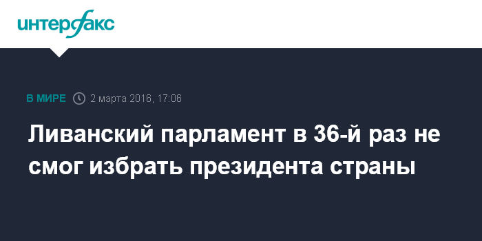 Москва. 2 марта. INTERFAX.RU - Парламент Ливана 36-й раз подряд не смог выбрать нового президента страны, сообщает сайт ливанского издания The Daily Star.