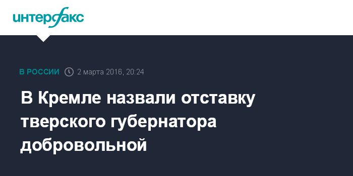 В связи с заявлением губернатора Шевелева о досрочном прекращении полномочий "принять отставку губернатора Тверской области Шевелева А.В. по собственному желанию", говорится в тексте указа президента.