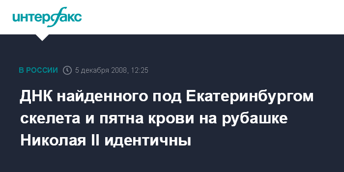 ДНК найденного под Екатеринбургом скелета и пятна крови на рубашке Николая II идентичны