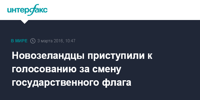 Москва. 3 марта. INTERFAX.RU - В Новой Зеландии в четверг началось голосование, по итогам которого будет решено, следует ли менять флаг страны, пишут британские СМИ.
