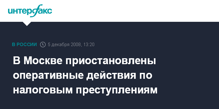 В Москве приостановлены оперативные действия по налоговым преступлениям