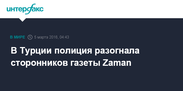 Москва. 5 марта. INTERFAX.RU - В Стамбуле полиция применила слезоточивый газ и водометы против сотен людей, собравшихся у редакции турецкой оппозиционной газеты Zaman, сообщает в субботу британская телерадиокорпорация BBC.