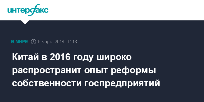 Китай в 2016 году широко распространит опыт реформы собственности госпредприятий
