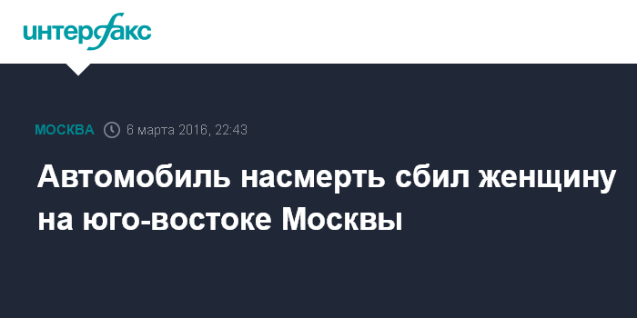 Москва. 6 марта. INTERFAX.RU - На юго-востоке Москвы автомобиль насмерть сбил женщину, сообщил "Интерфаксу" в воскресенье источник в правоохранительных органах