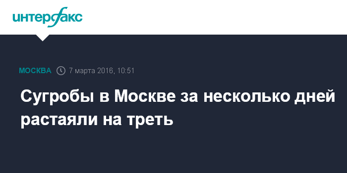 "После недавнего мощнейшего снегопада сугробы в Москве к утру 3 марта подросли до 50 см. Сегодня высота снежного покрова в районе базовой городской метеостанции на ВДНХ насчитывает 34 см, то есть на 32% меньше, чем всего несколько дней назад", - рассказал собеседник агентства.