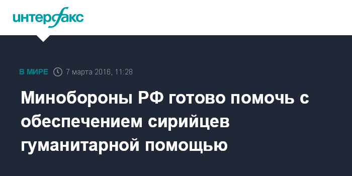 Минобороны РФ готово помочь с обеспечением сирийцев гуманитарной помощью