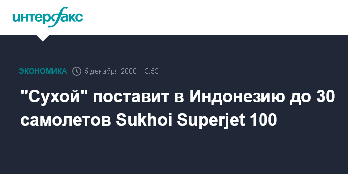 "Сухой" поставит в Индонезию до 30 самолетов Sukhoi Superjet 100