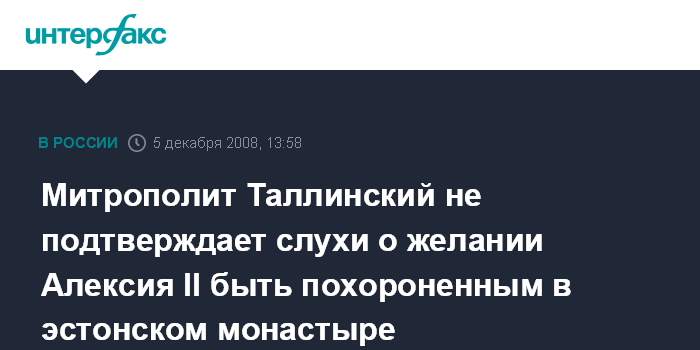 "Я этого не слышал и никто мне официально этого не подтвердил, будто Алексий П желал быть похороненным в Эстонии", - сказал Корнилий порталу газеты "Ээсти Пяевалехт".