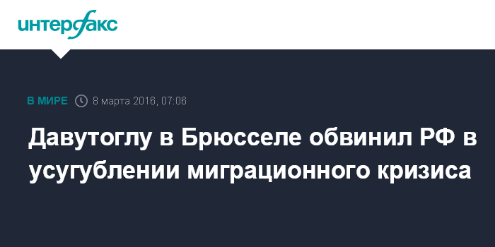 Давутоглу в Брюсселе обвинил РФ в усугублении миграционного кризиса