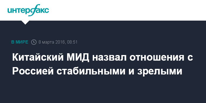 Китайский МИД назвал отношения с Россией стабильными и зрелыми
