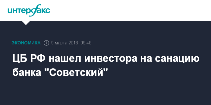 ЦБ РФ нашел инвестора на санацию банка "Советский"