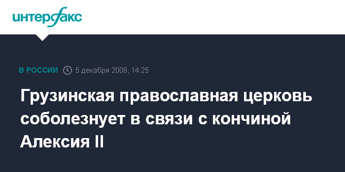 Москва. 5 декабря. INTERFAX.RU - Грузинская православная церковь выразила глубокие соболезнования в связи с кончиной патриарха Московского и Всея Руси Алексия Второго.