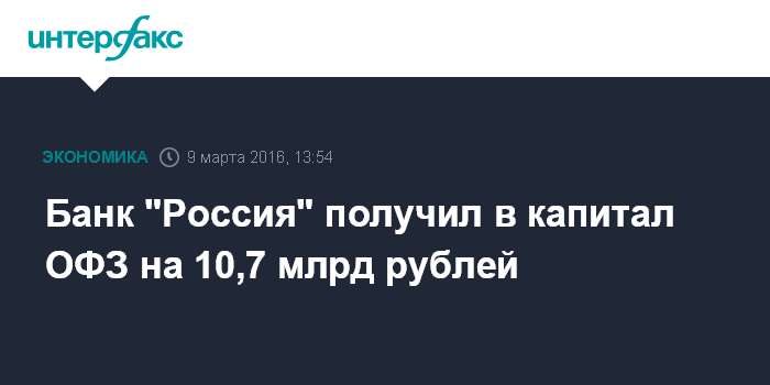Банк "Россия" получил в капитал ОФЗ на 10,7 млрд рублей