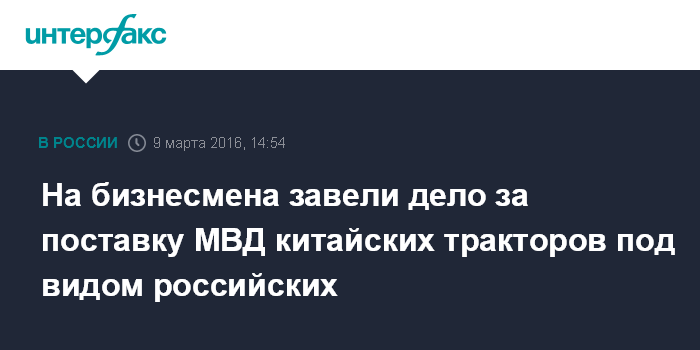 На бизнесмена завели дело за поставку МВД китайских тракторов под видом российских