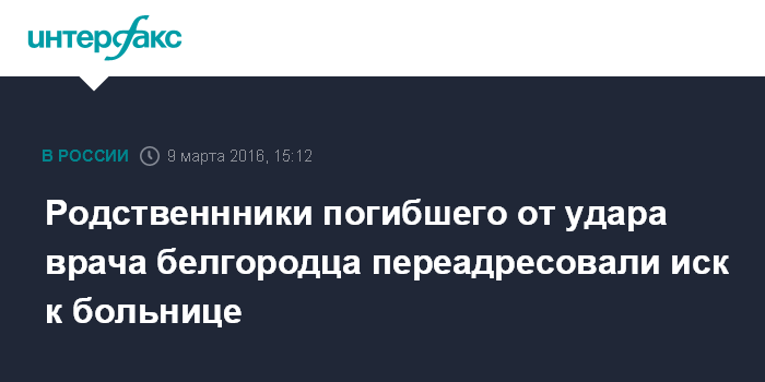 Родственнники погибшего от удара врача белгородца переадресовали иск к больнице