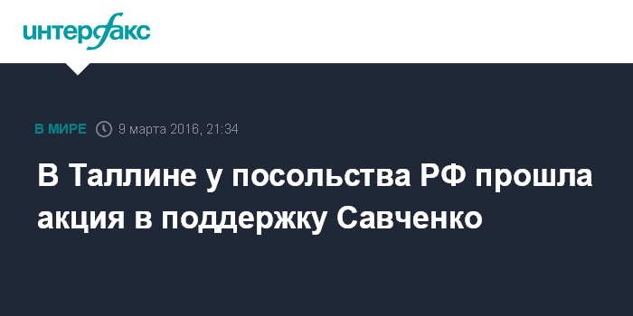 Москва. 9 марта. INTERFAX.RU - В Таллине у здания посольства России в среду прошел пикет в поддержку обвиняемой в причастности к гибели российских журналистов украинской летчицы Надежды Савченко.