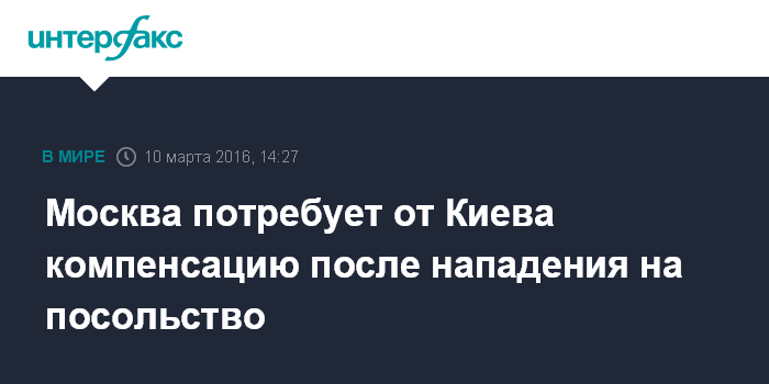 Москва. 10 марта. INTERFAX.RU - Россия потребует от Украины компенсацию в связи с нападением на здание российской дипмиссии в Киеве, заявил глава МИД РФ Сергей Лавров.