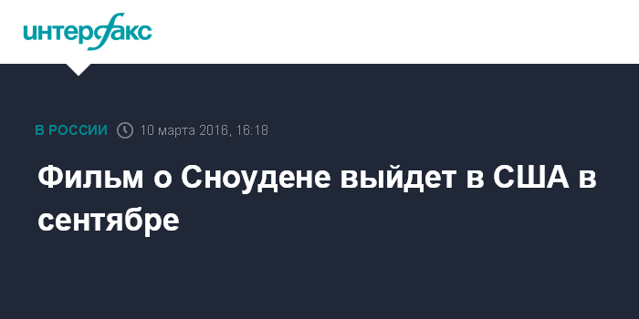 Москва. 10 марта. INTERFAX.RU - Премьера фильма "Сноуден" о бывшем сотруднике АНБ США состоится в США 16 сентября, рассказал адвокат Сноудена Анатолий Кучерена, по роману которого снята картина.