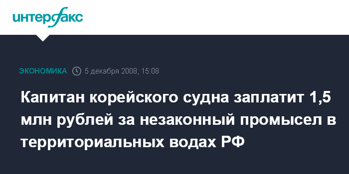 "Ущерб, причиненный действиями капитана государственным интересам РФ, составил 1 млн 500 тыс. рублей. Суд, учитывая ряд смягчающих обстоятельств, приговорил Ли Ин Хъена к штрафу в размере 100 тысяч рублей", - говорится в сообщении, размещенном на сайте Генпрокуратуры РФ.