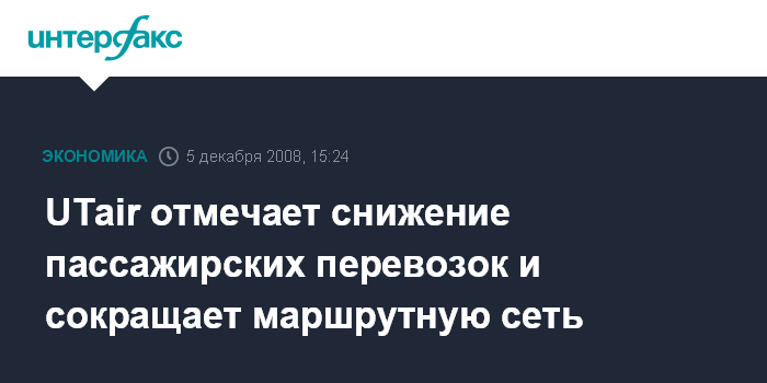 "Ситуация довольно сложная, мы идем по сокращению транспортных перевозок. Буквально в последнюю неделю сокращена на 28-30% маршрутная сеть авиакомпании", - сказал Кравченко. По его словам, падение пассажиропотока будет продолжаться и в будущем. "Билеты приобретаются только за неделю вперед, тогда как раньше продавались за 180 дней. Впереди новогодние праздники, но самолеты не заполнены даже наполовину", - отметил он.