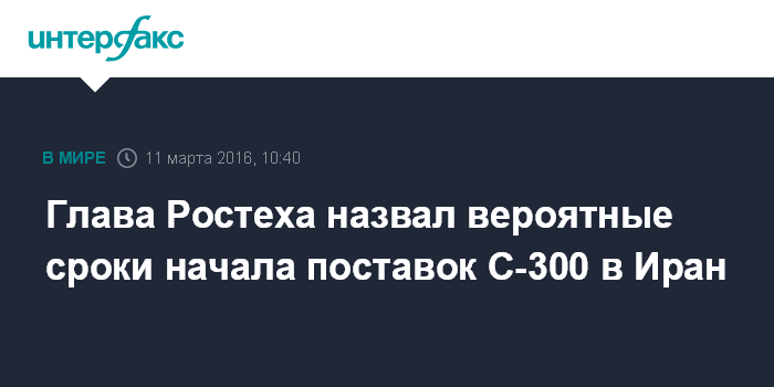 Москва. 11 марта. INTERFAX.RU - Россия поставит в Иран ЗРС С-300 до конца нынешнего года, сообщил в интервью американской газете "Уолл-стрит джорнэл" глава Ростеха Сергей Чемезов.