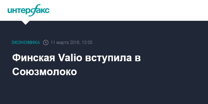 Москва. 11 марта. INTERFAX.RU – Российское подразделение финского концерна Valio стало членом Национального союза производителей молока (Союзмолоко), сообщается в пресс-релизе концерна.