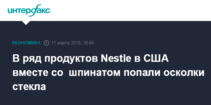 В ряд продуктов Nestle в США вместе со шпинатом попали осколки стекла