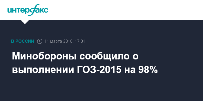 Минобороны сообщило о выполнении ГОЗ-2015 на 98%