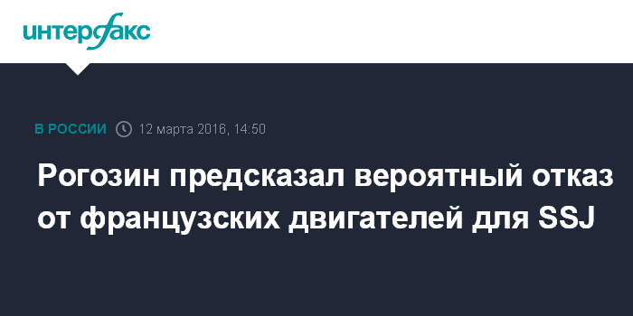 Москва. 12 марта. INTERFAX.RU - Вице-премьер Дмитрий Рогозин считает, что благодаря двигателю ПД-14 в ближайшее время удастся отказаться от французских двигателей для самолетов "Сухой Суперджет".