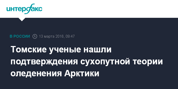 Москва. 13 марта. INTERFAX.RU - Ученые Томского политехнического университета (ТПУ) совместно с коллегами из Стокгольмского университета во время экспедиции в морях Восточной Арктики обнаружили подтверждение теории о том, что формирование арктического ледника началось с материка, сообщает пресс-служба ТПУ.